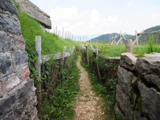 Questo percorso ad anello ci porta a scoprire ricoveri e postazioni della Grande Guerra in uno dei punti dove fu arrestata l'avanzata degli austroungarici.