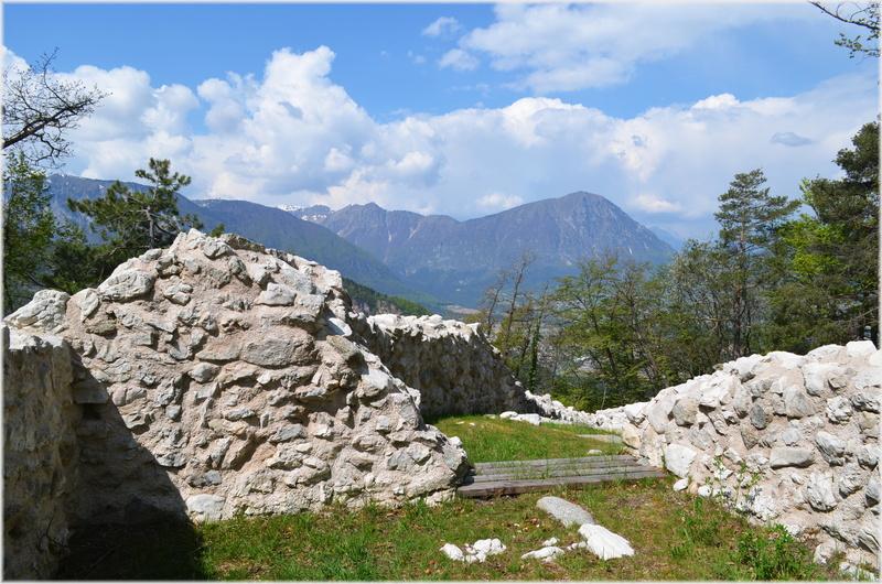 La nostra meta é un piccolo tuffo nella storia, una fortificazione riportata alla luce e resa fruibile grazie a molti archeologici che vi hanno lavorato, il sito si può dividere principalmente in 3 zone: La torre con il muro di cinta meridionale; La Chiesa sulla sommità del colle; e una zona di scavi recenti che guarda verso tutta la piana del Bleggio e del Banale