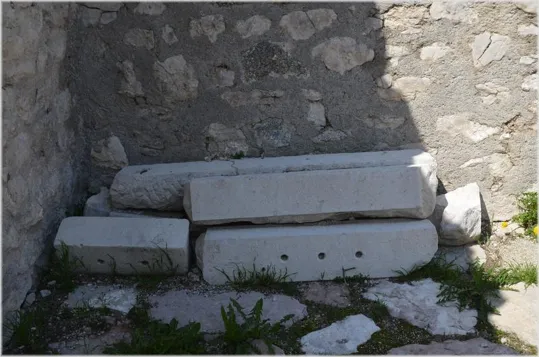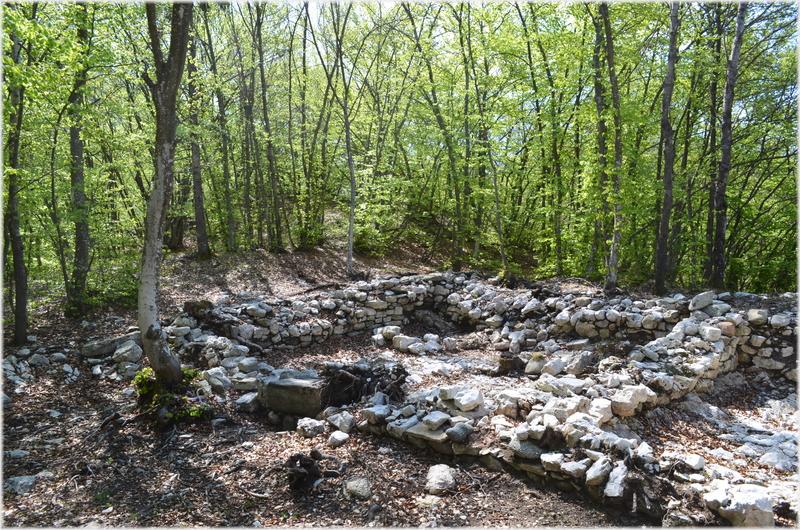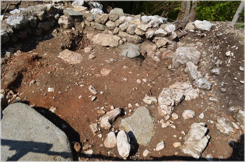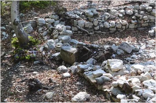 Le prime testimonianze che si incontrano sono poco sotto l'entrata del sito e sono i resti di due locali