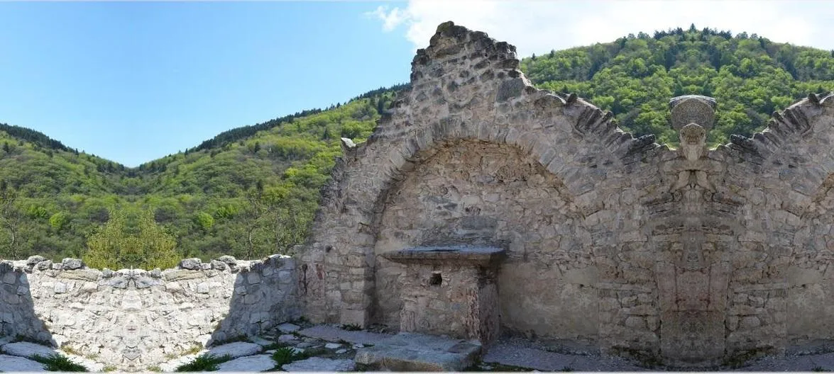 Eccoci alla chiesa, con le sue mura e quello che doveva essere il portico