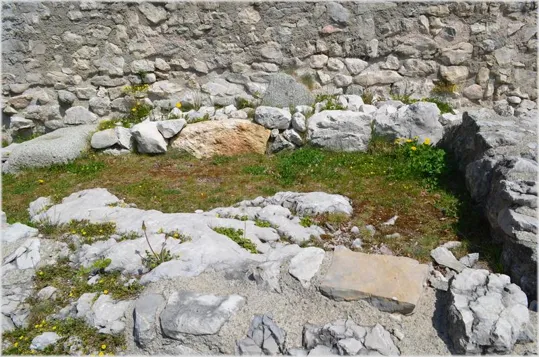 A fianco della chiesa un troncone di mura, qui si capisce che le mura circondavano l'antica fortezza
