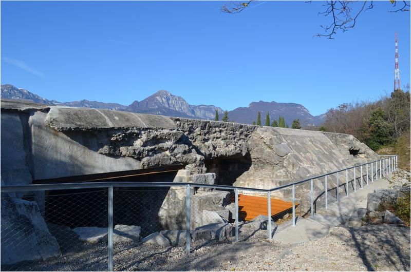 Il percorso per la Batteria di Mezzo si snoda sul crinale del monte Brione trovando varie testimonianze lungo il percorso