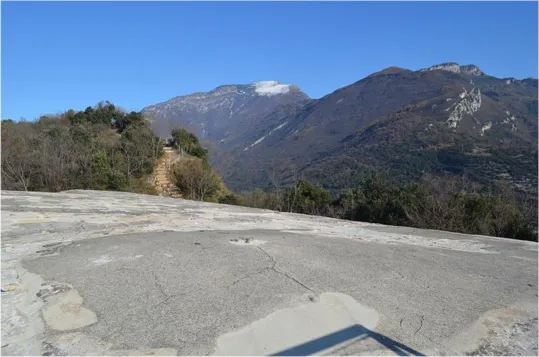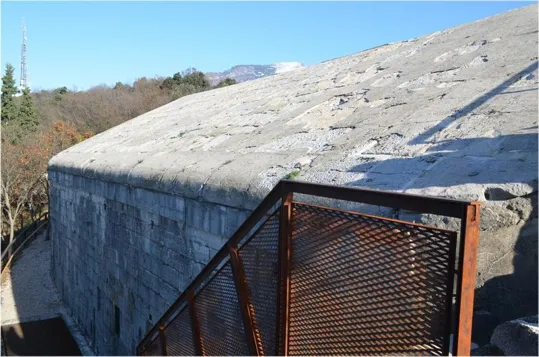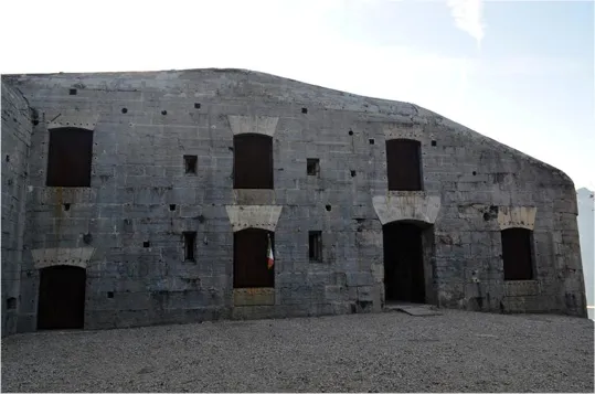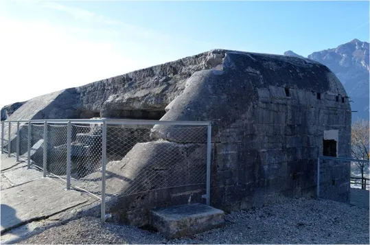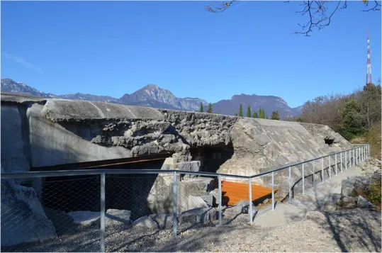 Un osservatorio della batteria a picco sul Brione con vista verso il monte Altissimo, Biaena, Stivo