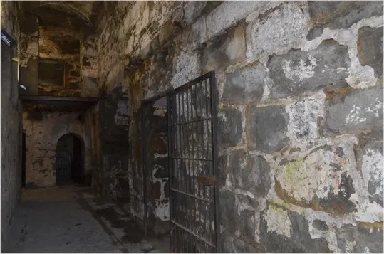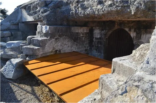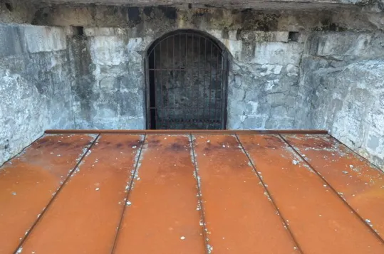 La scala che portava nella parte più bassa della batteria che ora resta chiusa