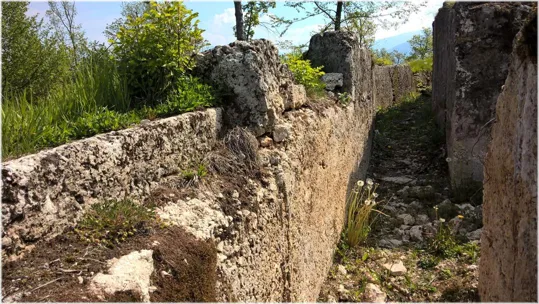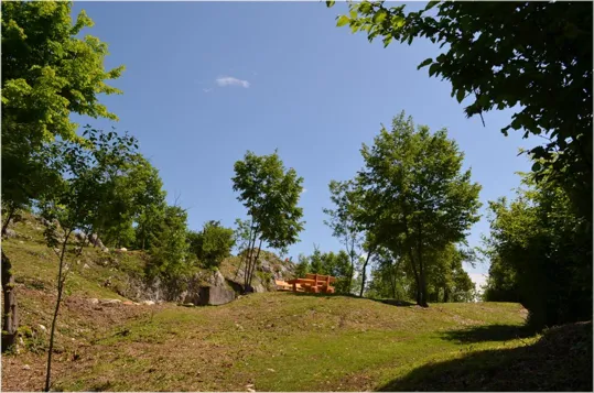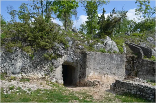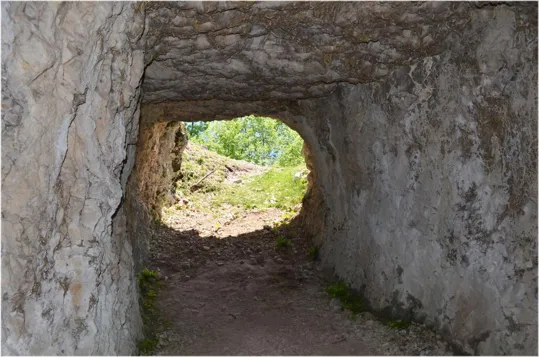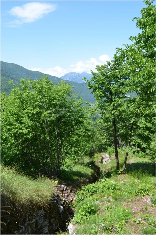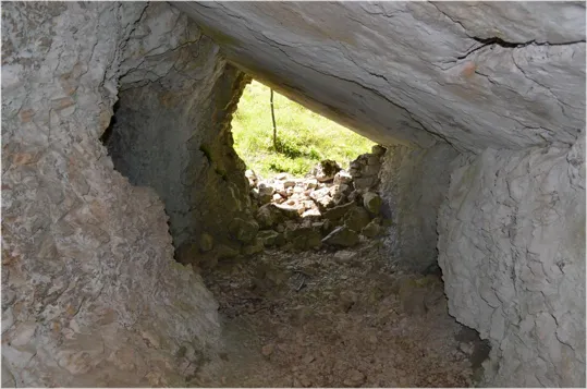 Terminati i trinceramenti, possiamo tornare per la strada dell'andata oppure proseguendo lungo la trincea che passa a fianco della cannoniera di sinistra, torniamo all'auto dopo aver incrociato un'ultima caverna per mitragliatrici
