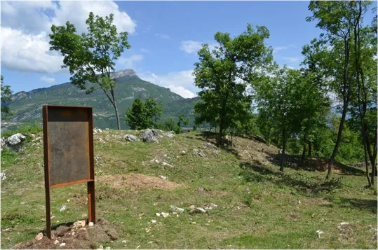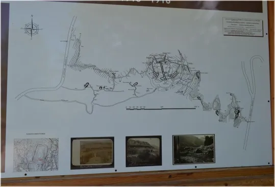 La prima cosa da vedere è il cartello illustrativo, che spiega la storia, dove erano posizionate le gallerie e le postazioni attorno al Caposaldo