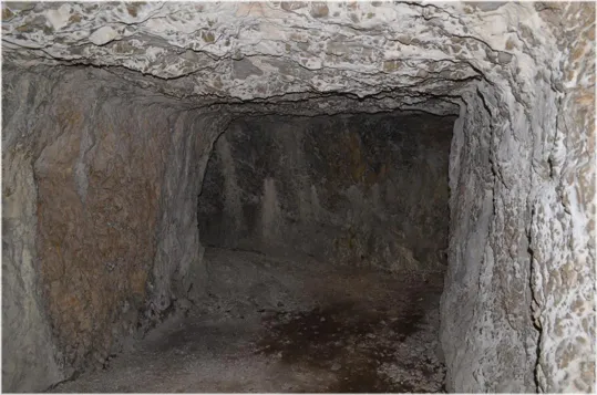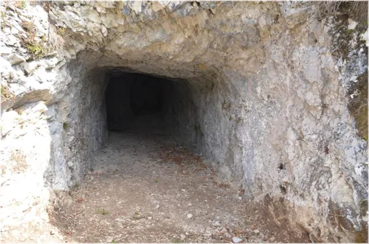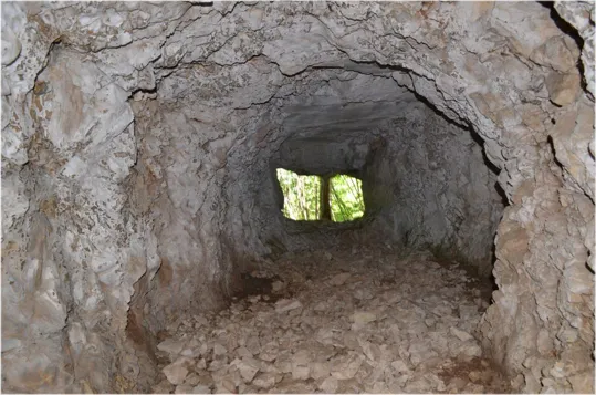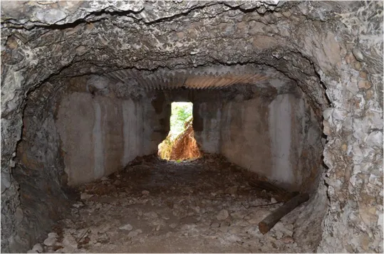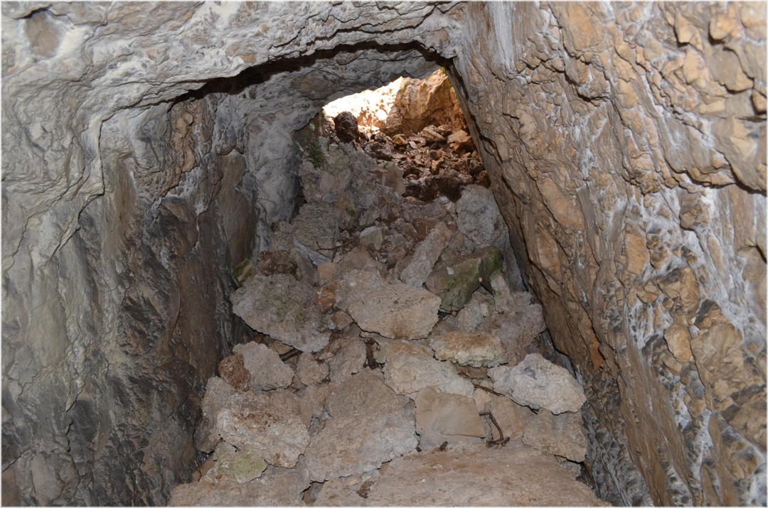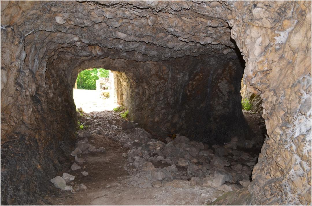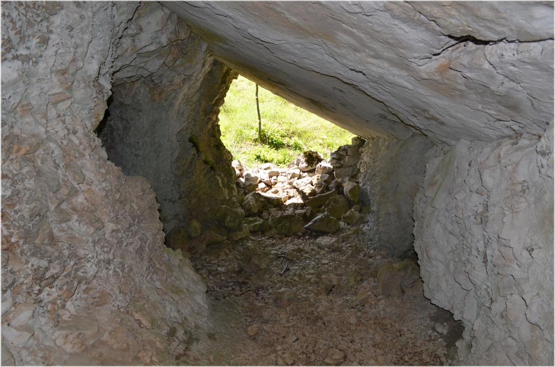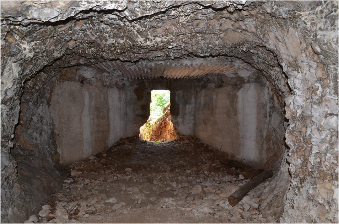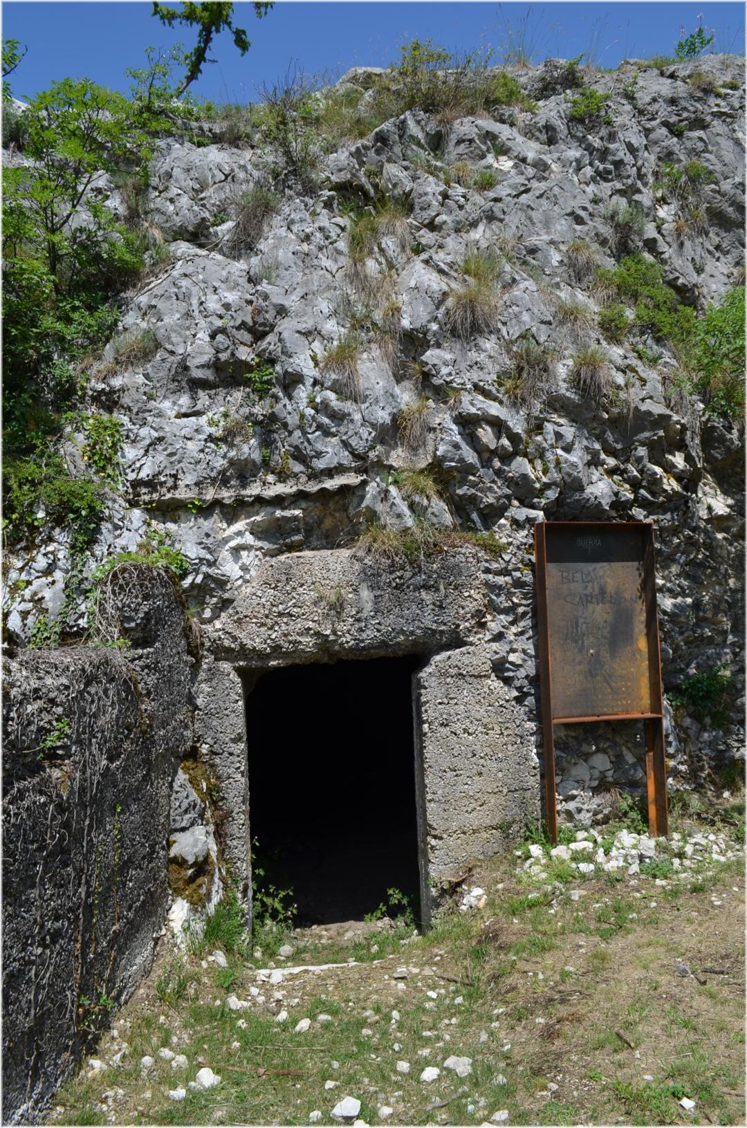 Iniziamo la visita entrando nella lunga galleria che porta ad una traversone con postazioni per mitragliatrici a destra e a sinistra