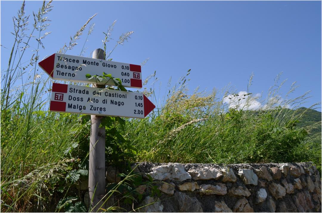 Dall'uscita autostradale di Rovereto sud seguire le indicazioni per Mori, da li si seguono le indicazioni per Brentonico dopo pochi km sulle destra troverete un incrocio con le indicazioni per Castione seguitele, prima del paese lungo la statale a destra troverete un piccolo parcheggio e a sinistra il classico cartello della Grande Guerra