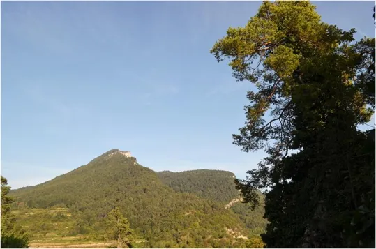 Il paese di Pannone, con a sinistra il Monte Stivo e a destra il Monte Biaena