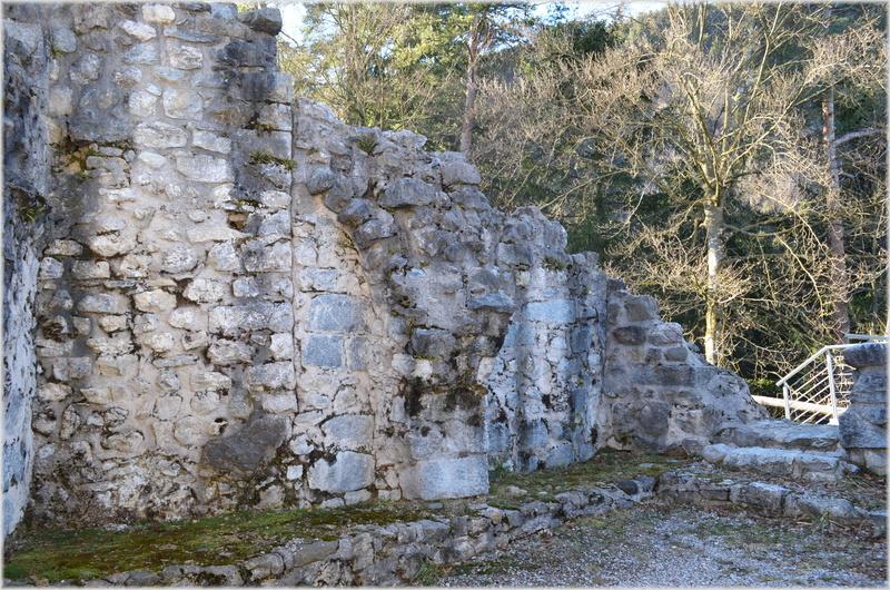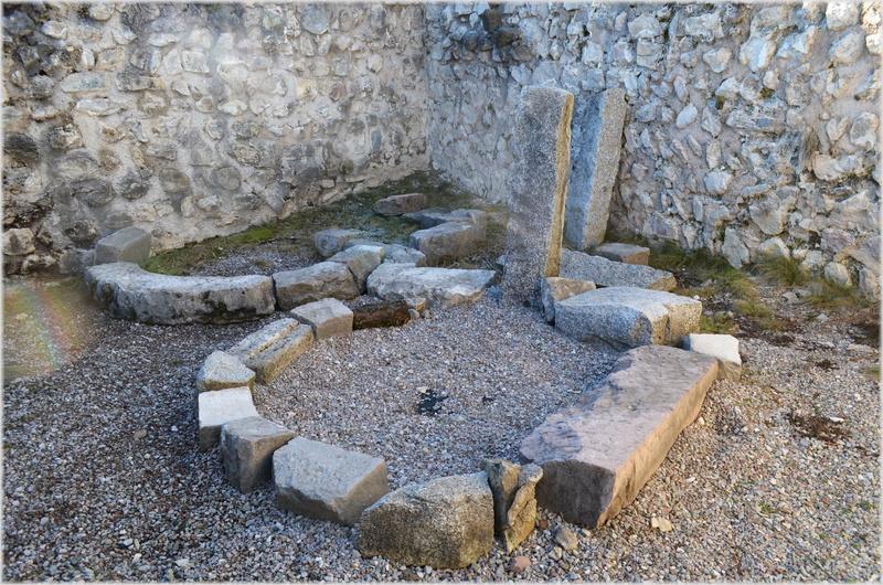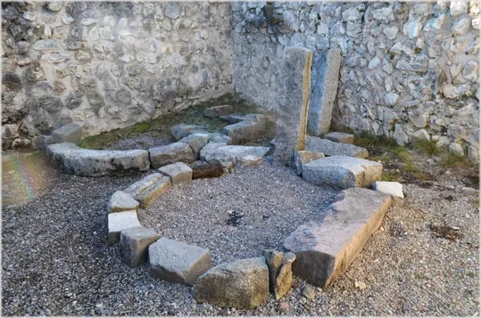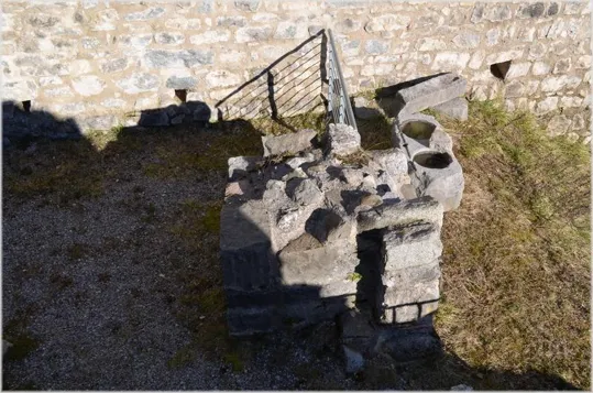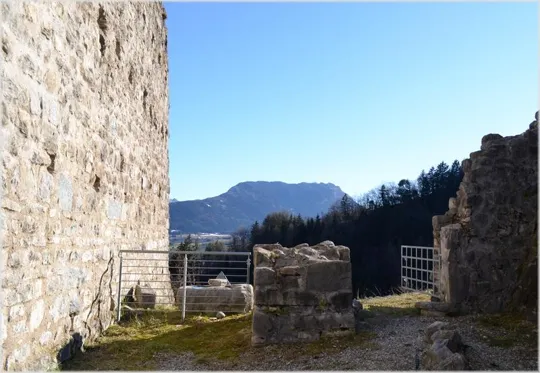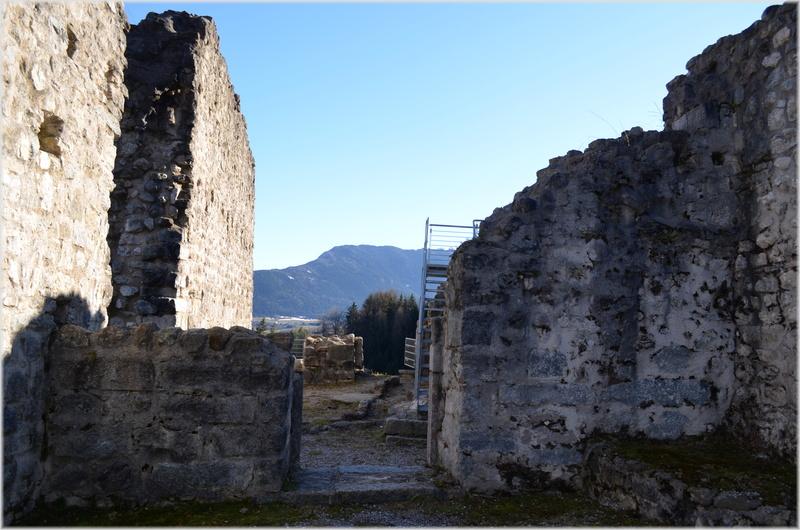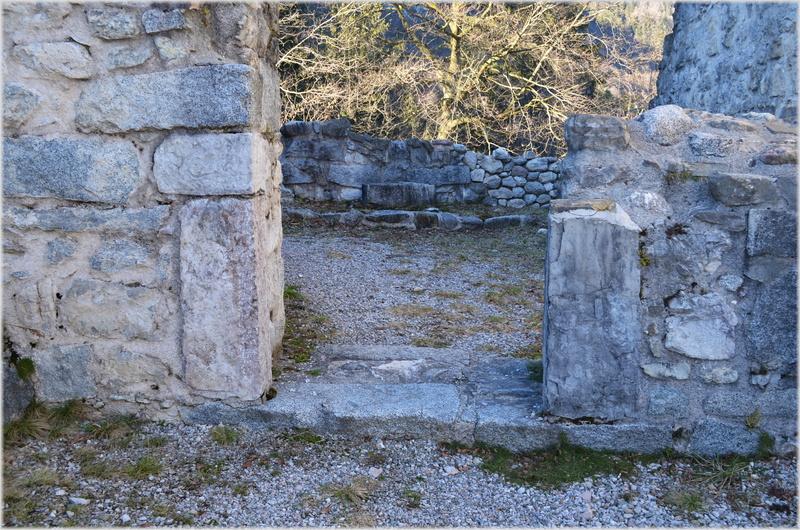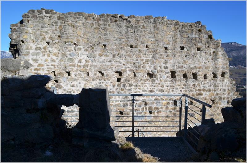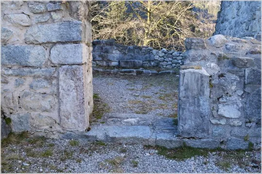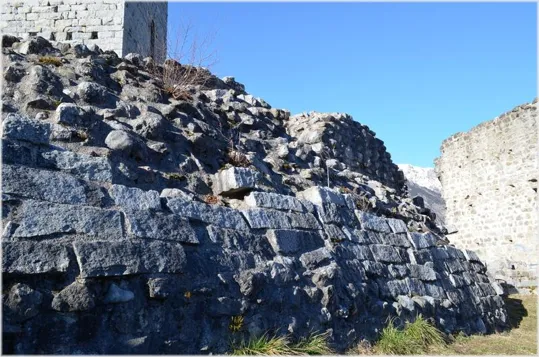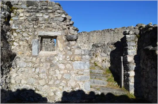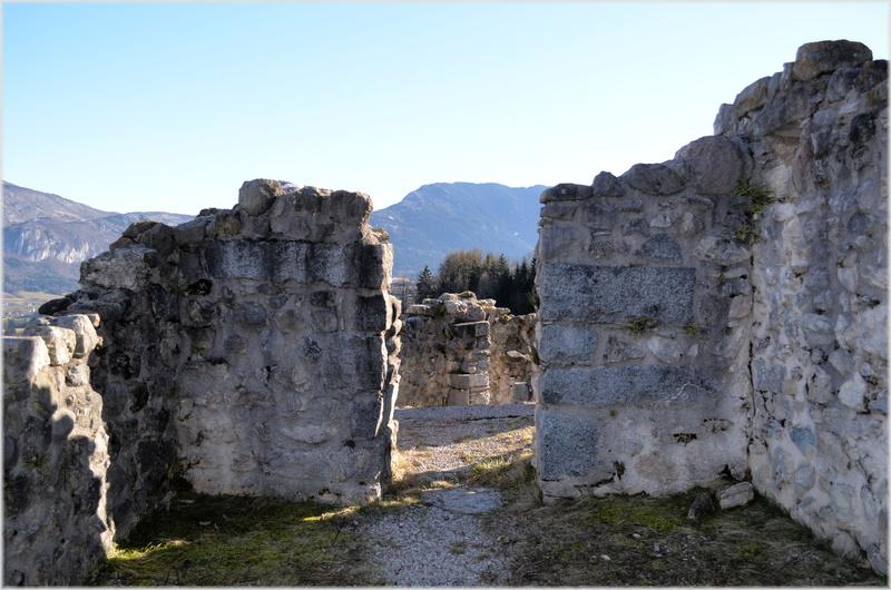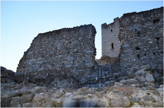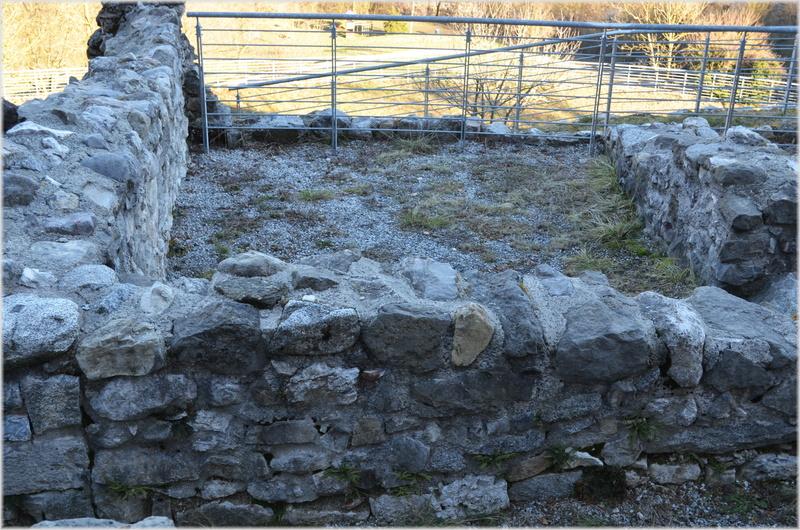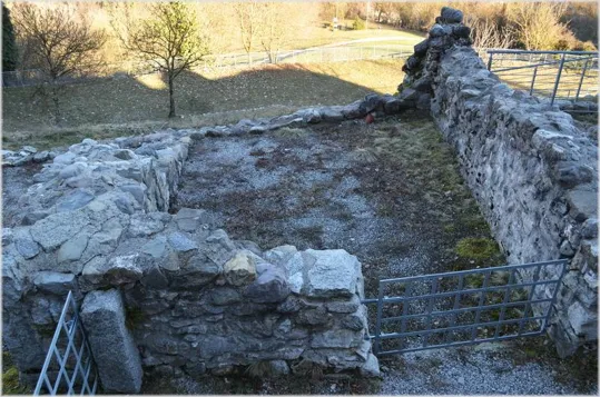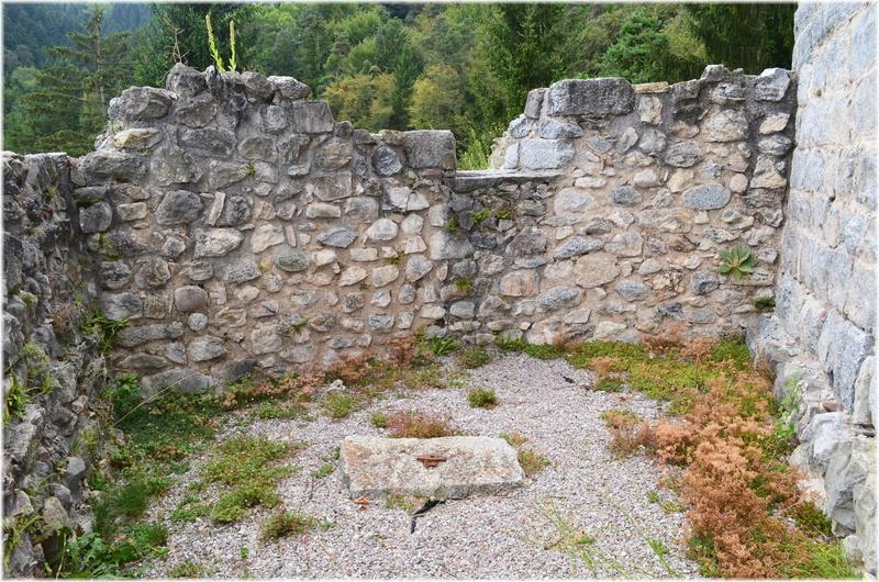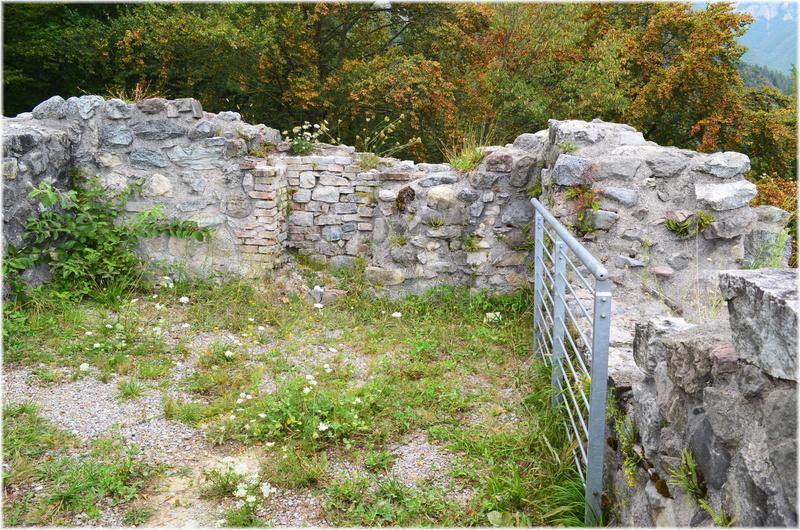 Nella parte interna del castello a ridosso delle mura, sono rimasti solo pochi resti degli edifici presenti.