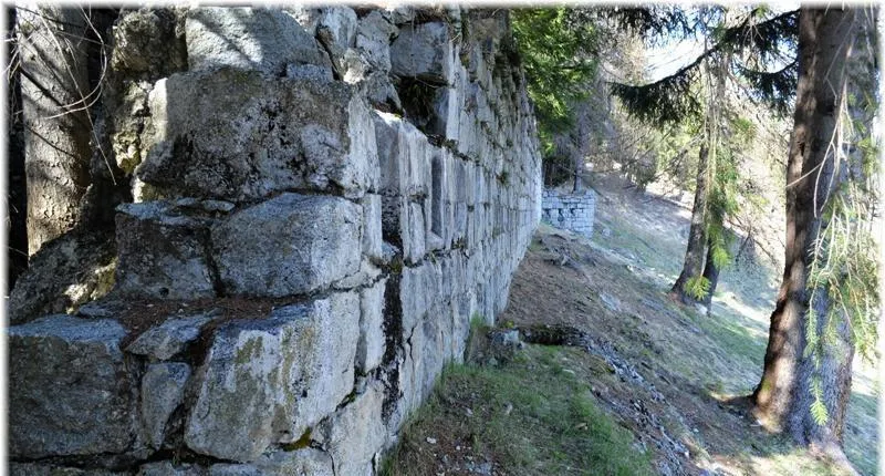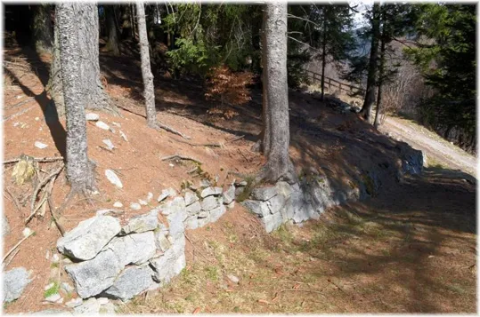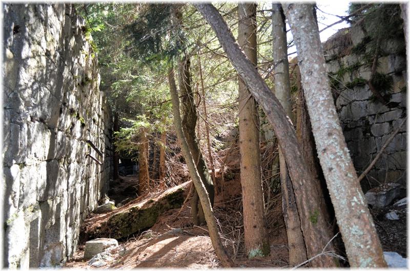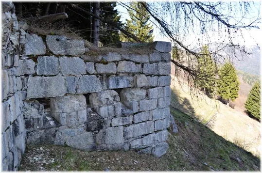 I segni del passato si iniziano a notare poco prima dell'arrivo al forte, già con una piccola fortificazione.