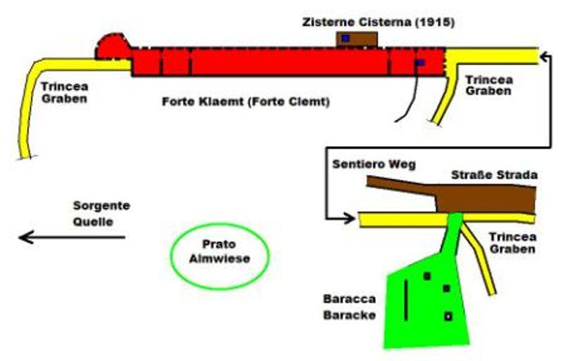 Una fortezza difensiva risalente, nella sua parte originaria, al primo periodo dell'epoca napoleonica, forse al 1805, e poi riadattata a caserma militare nel 1915, in concomitanza con l'avvio della prima guerra mondiale sul fronte dell'Adamello. Potrebbe essere questa la lettura storica di quel muto e straordinario monumento storico che è la fortezza di Clemp.