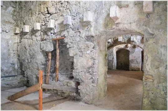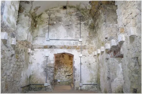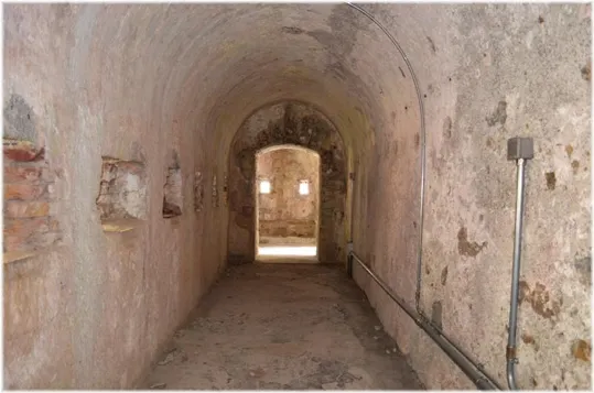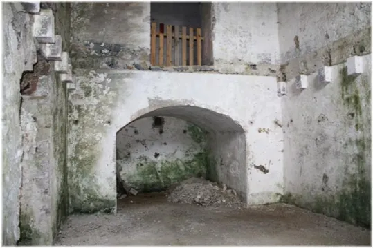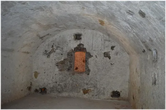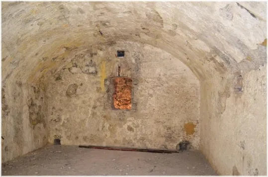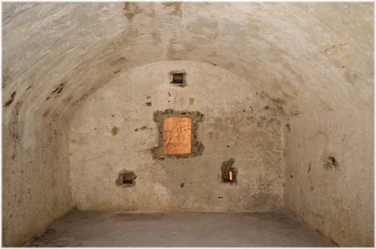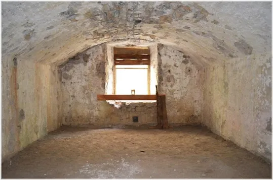 le bocche da fuoco per i cannoni e ganci per sollevamento dei pezzi e delle munizioni, ognuna di queste postazioni aveva una stanza come riserva per le munizioni