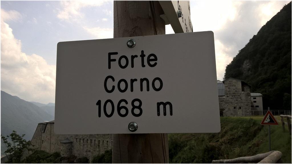 Il forte Corno faceva parte della seconda fase di rafforzamento dei confini (1880/1892). Infatti dopo i forti della prima fase: il Larino, il Danzolino e il Revegler, vennero costruiti ad integrazione il forte Corno e il Cariola. Costruito tra il 1883 e il 1890 e anche se successivamente fu riadattato e rimodernato tra il 1909 e il 1910, all'inizio del conflitto fu disarmato perché considerato obsoleto e i suoi pezzi furono piazzati all'aperto in localitá Peschiera. Nella seconda guerra mondiale (1940/1945) fu usato come postazione di mitragliatrici. Passato per un periodo sotto proprietá privata, il comune di Praso ne poi ha rilevato la proprietá e ha effettuato il restauro dell'opera.