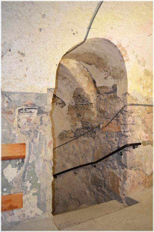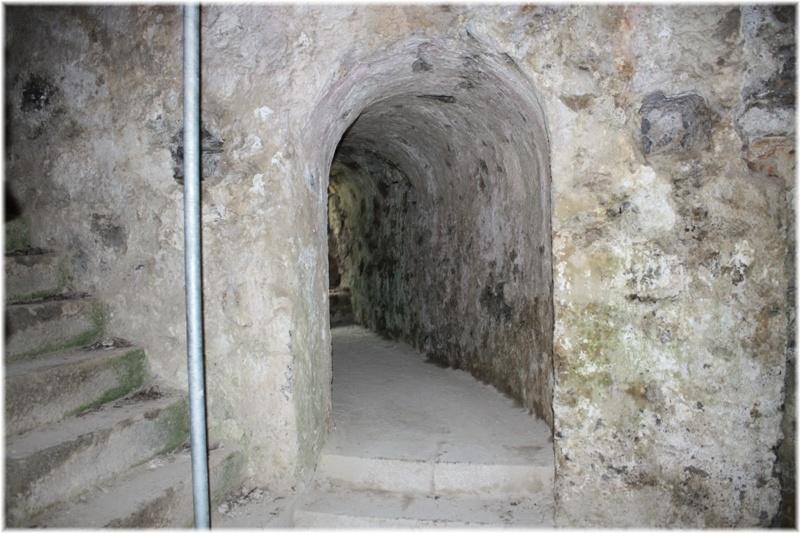 la poterna a difesa dell'ingresso e del fossato, prima del restauro e dopo il ripristino