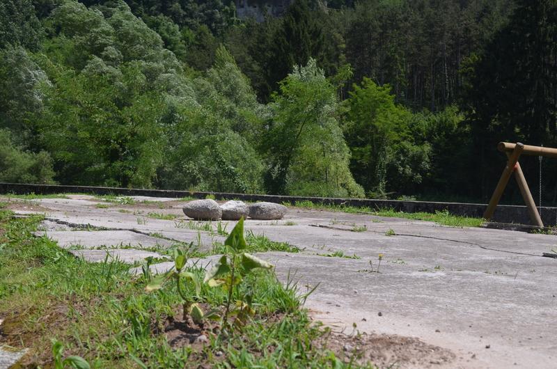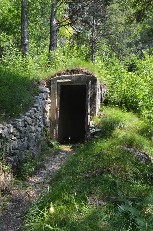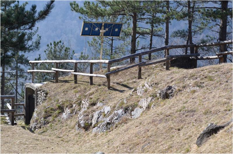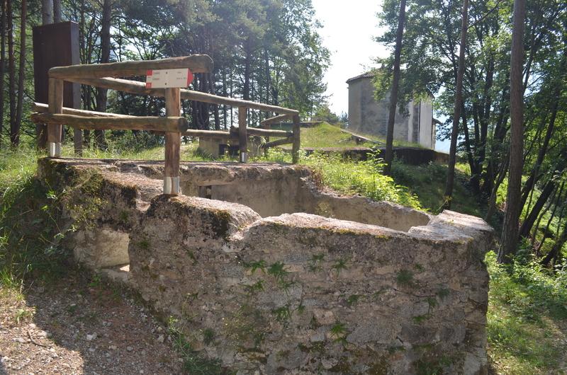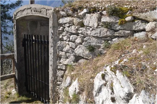 La prima struttura che troviamo é il vecchio poligono di tiro italiano, questo é il punto di partenza del nostro itinerario. Dietro il poligono si trovava la partenza della teleferica militare che arrivava alla chiesetta
