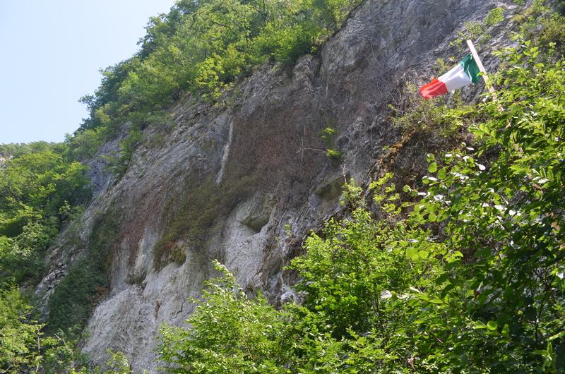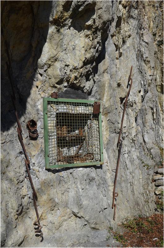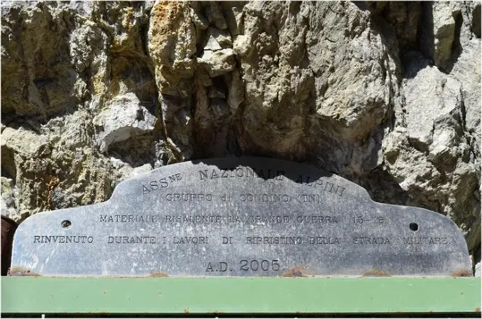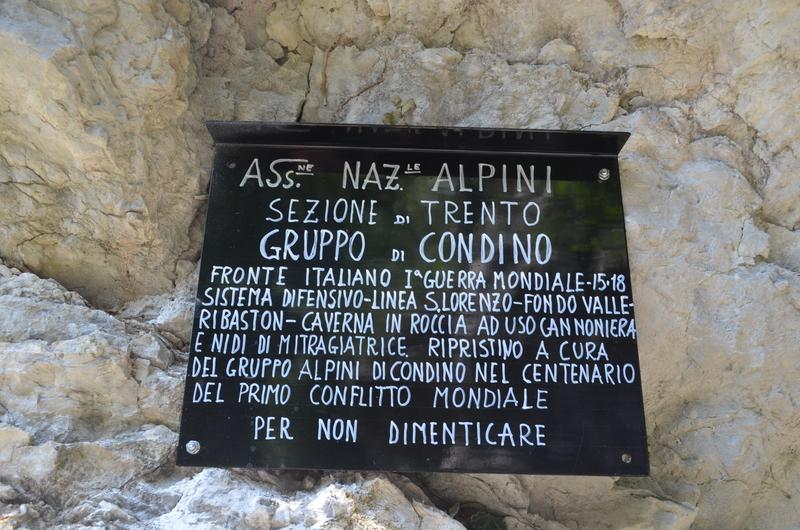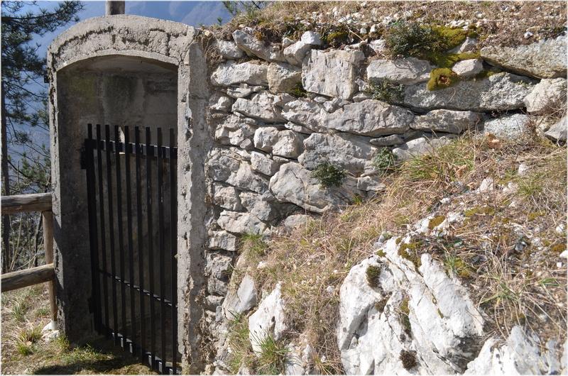 Passate le indicazioni si continua sulla mulattiera dove incontriamo una nicchia, qui sono stati raccolti dagli Alpini del gruppo di Condino, alcuni reperti trovati durante i lavori di ripristino della mulattiera