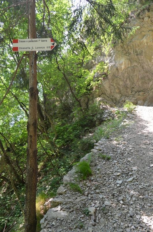La piccola chiesa di San Lorenzo si trova ad est del paese di Condino, abbarbicata su di un piccolo pianoro a mezza montagna, mentre la cannoniera si trova a metà del nostro percorso, tra il poligono e la chiesetta