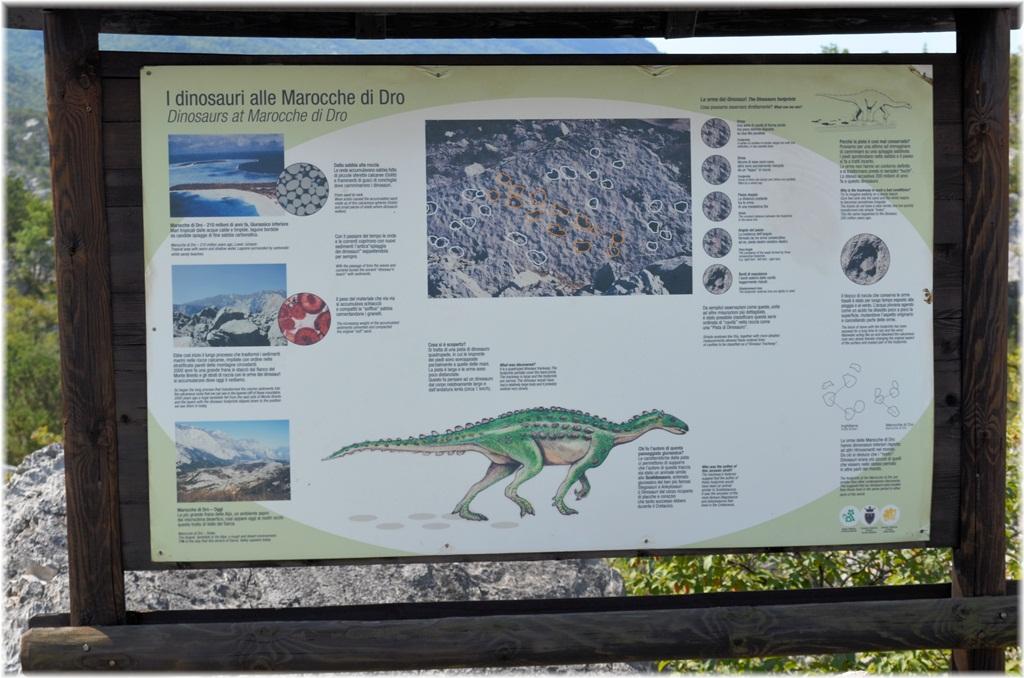 Anticamente però in quest'area della Valle del Sarca, vivevano i dinosauri, come testimoniano le tracce fossili di due dinosauri, ritrovate nel 2000, nelle Marocche di Dro, un carnivoro e un erbivoro di oltre 6 metri di lunghezza; inoltre nel 2007 sul soprastante monte Angione sono state ritrovate altre impronte fossili, con piste lunghe fino a 50 metri, lasciate da dinosauri tridattili di circa 190 milioni di anni fa.