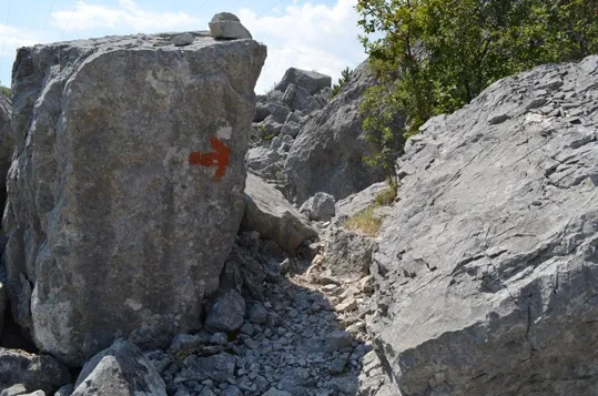 Il percorso é ben segnalato sia da cartelli sia dai caratteristici segnavia sui sassi
