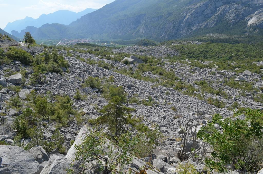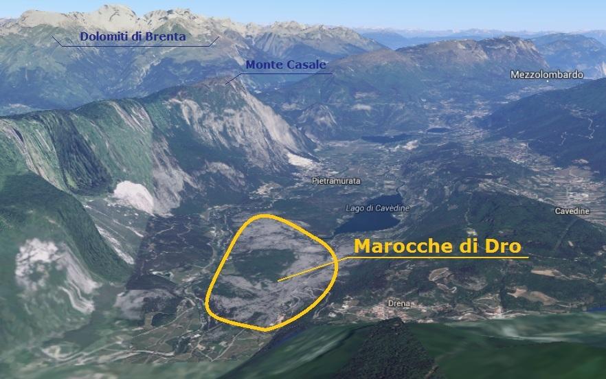 Il Biotopo Le Marocche di Dro, uno dei rari biotopi aridi del Trentino, si sviluppa su un'ampia distesa di sassi e macigni originatesi all'incirca 200.000 anni fa da tre grandi frane e altre frane minori. A sua volta questa distesa litica composta da rocce sedimentarie, tettoniche e calcaree ha subito gli effetti del carsismo superficiale si possono infatti vedere i caratteristici alveoli, le scannellature e piccoli campi solcati.