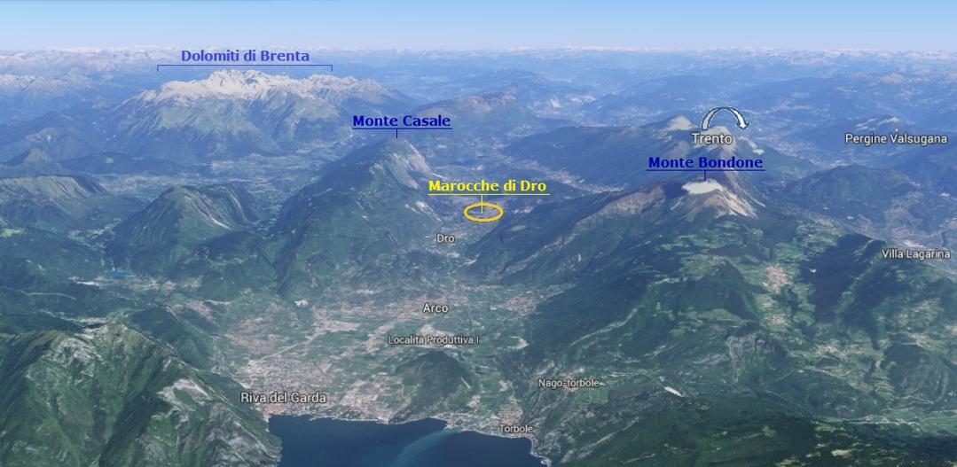 Veduta d'insieme sulla Valle del Sarca e sulle Marocche di Dro.
