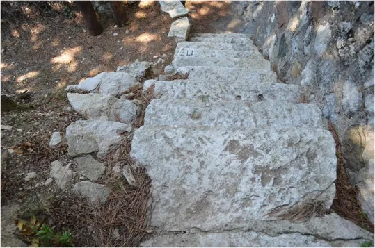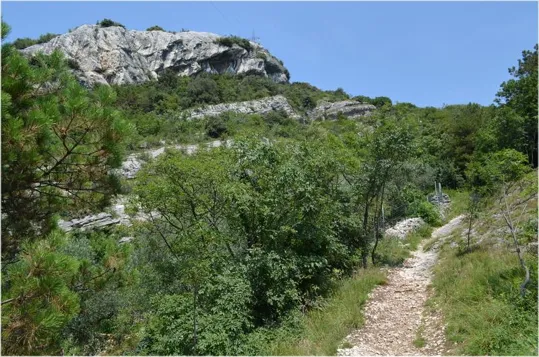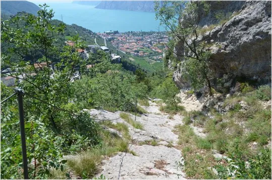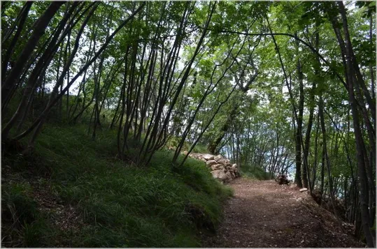 I sentieri per il nostro percorso sono addirittura tre ma si congiungono tutti in località Dorsale Tre Croci, il primo parte vicino ai forti di Nago, é abbastanza ripido, ma offre subito dei bei panorami sul lago di Garda, si passa per la località Castagneto e prima di arrivare alla Dorsale Tre Croci é possibile osservare una trincea e una ulteriore fortificazione