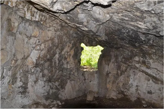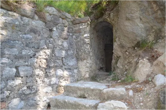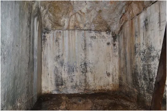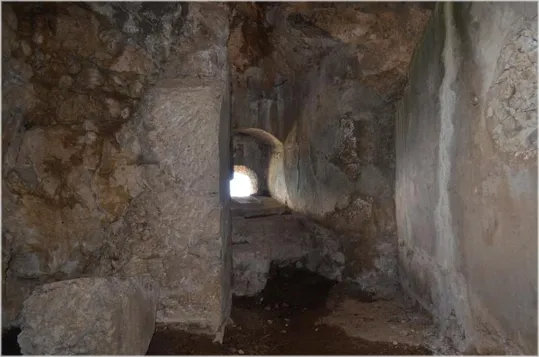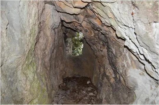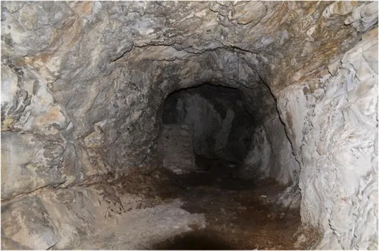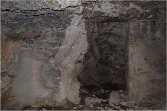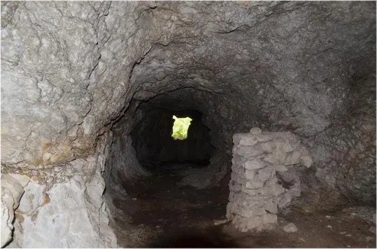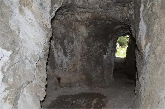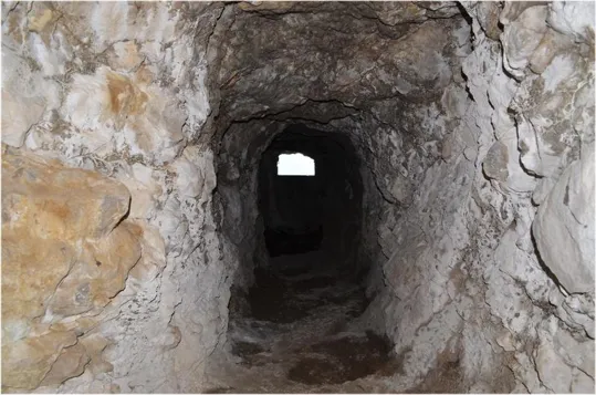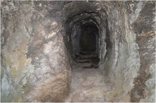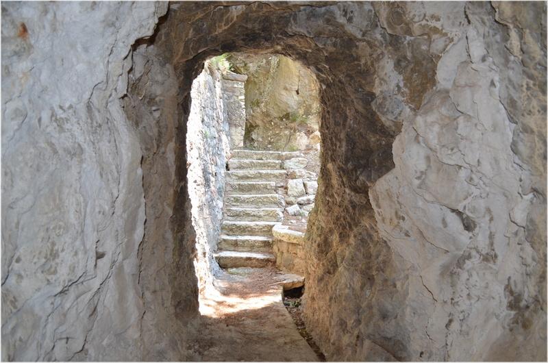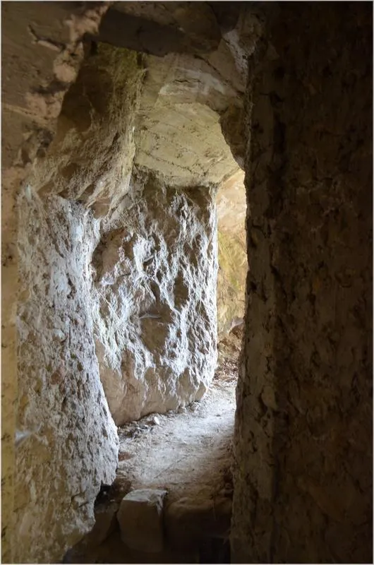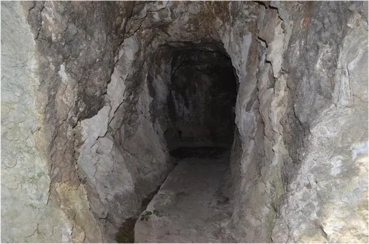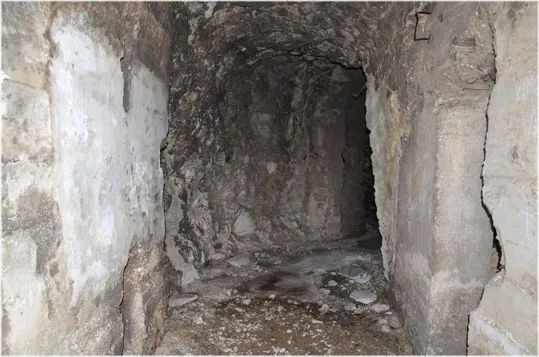 lunghe gallerie scavate nella roccia conducono all'aperture delle bocche da fuoco