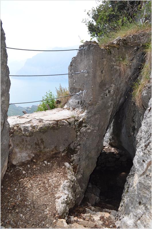 Continuando incontriamo, un deposito/corpo di guardia, una postazione con vista sul Lago di Garda e l'inizio di una trincea