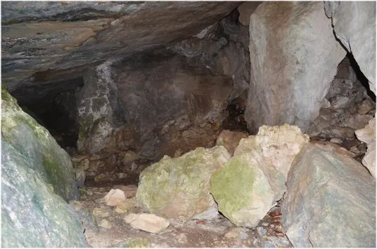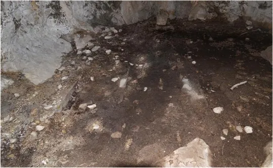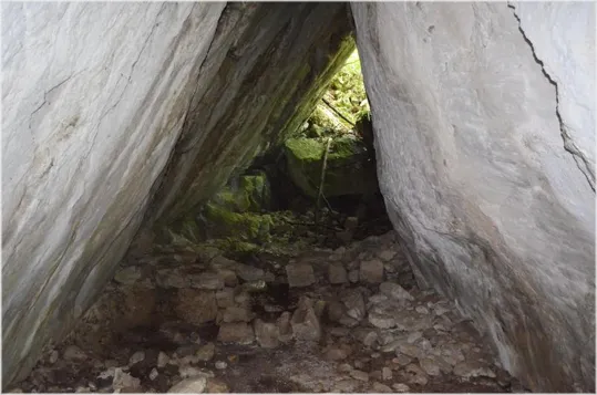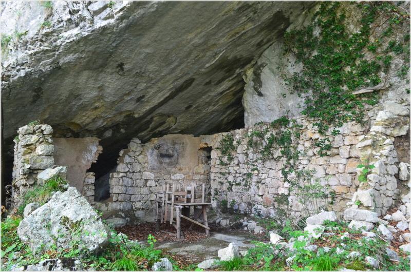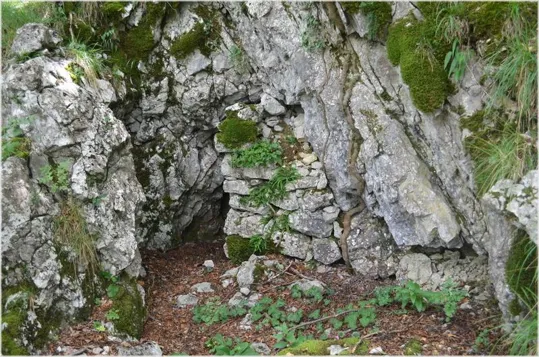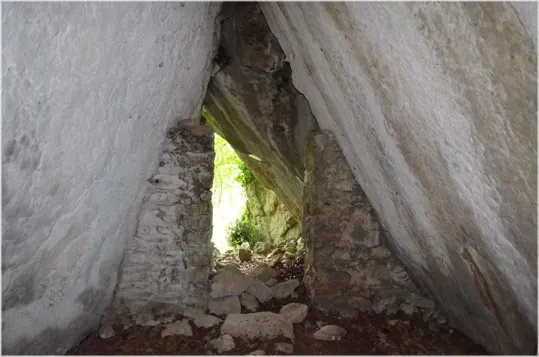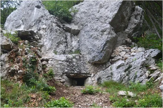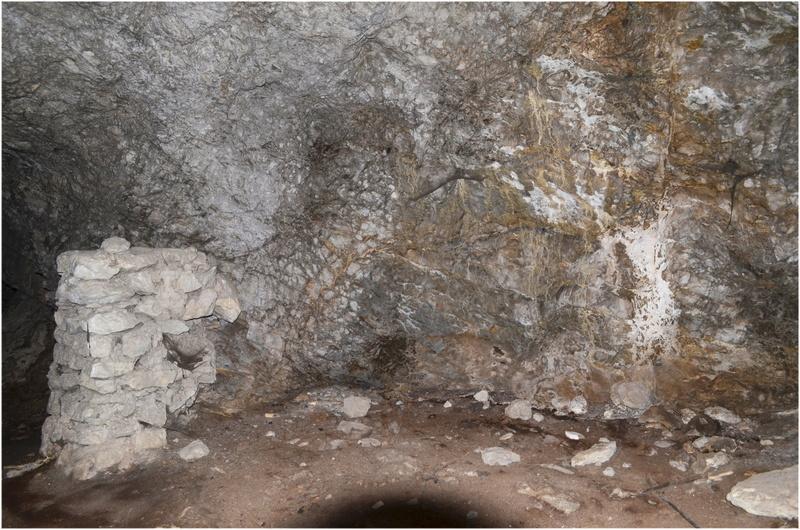 la postazione é molto particolare, ricavata in un masso, all'interno: a sinistra un piccolo deposito, a destra la postazione