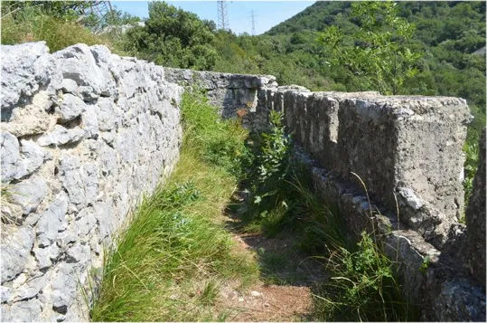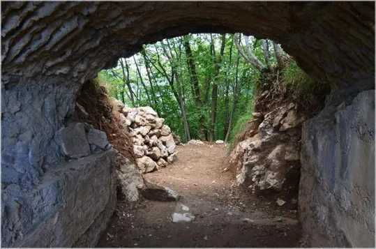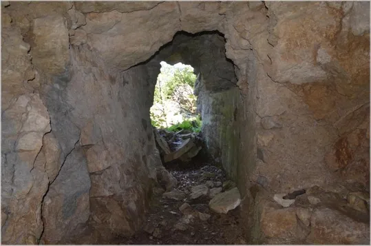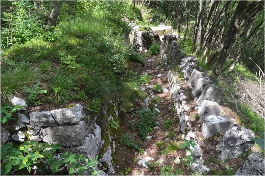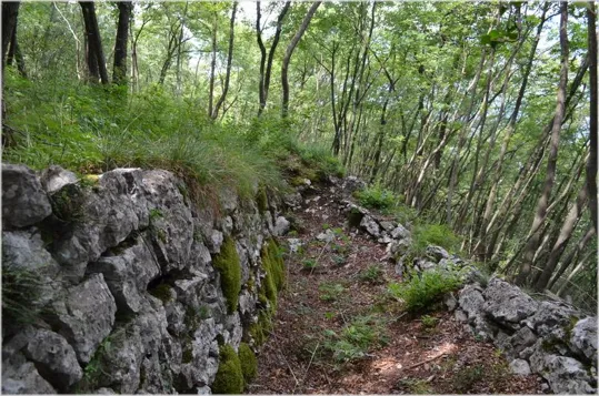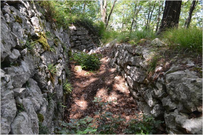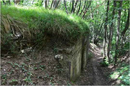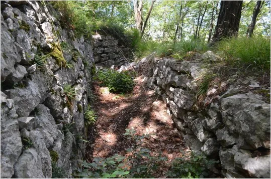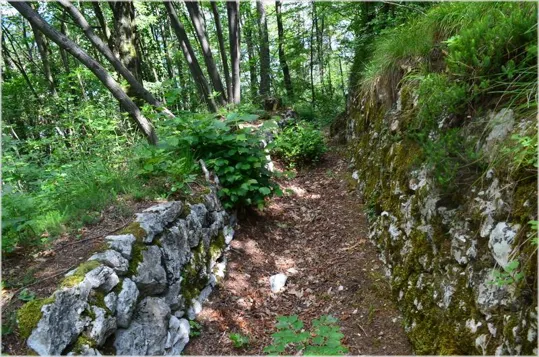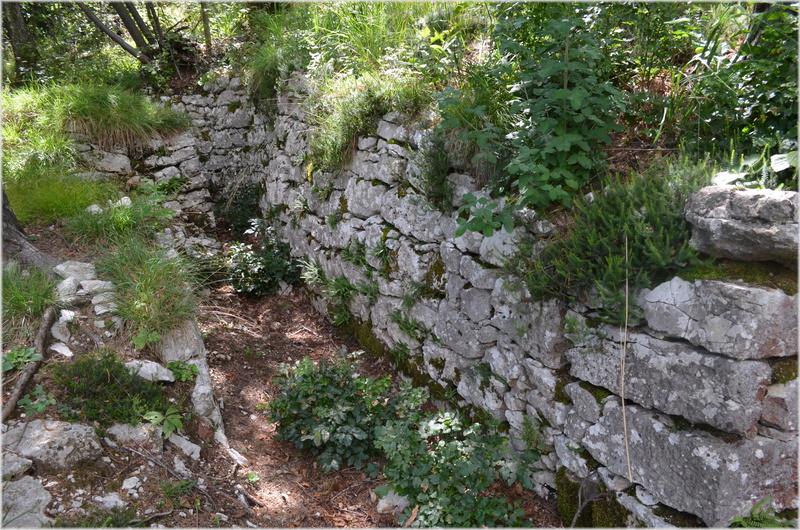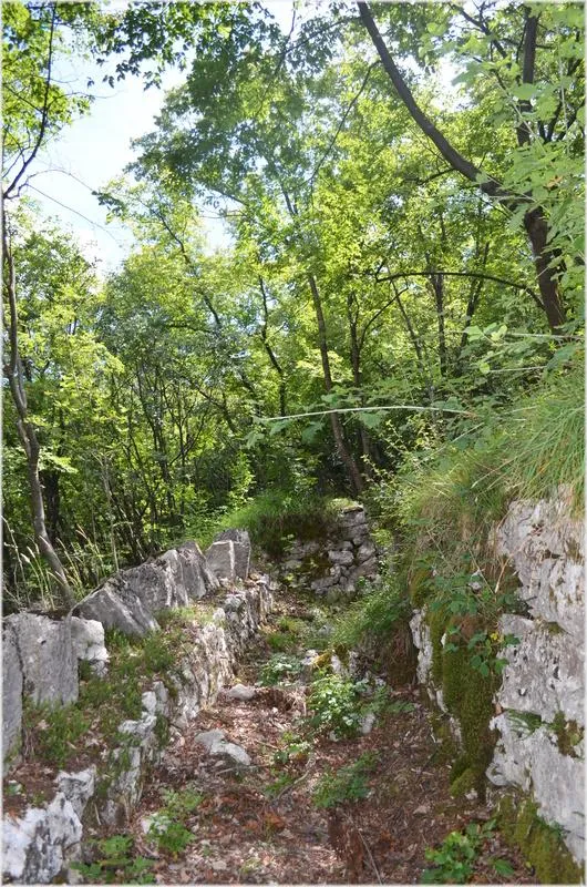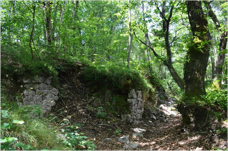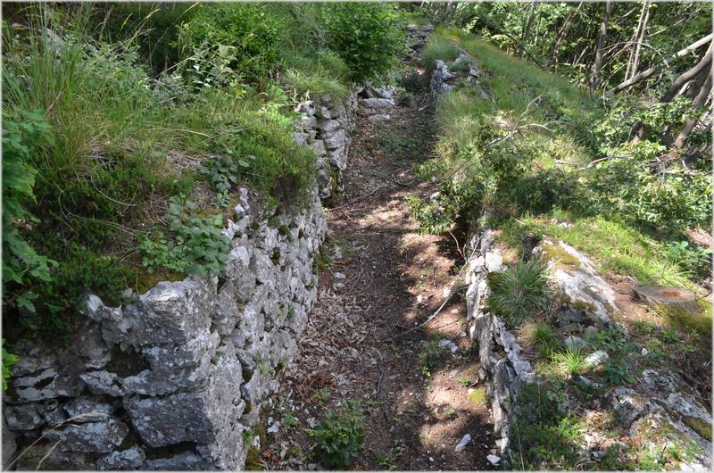 In questa area la trincea é realizzata con una protezione in muratura nella quale si aprono le feritoie per i fucilieri.