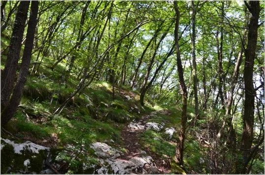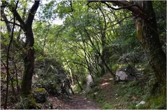 Il terzo e ultimo sentiero é il più comodo, inizia su strada asfaltata, continua nel bosco e poi si collega con il sentiero precedente