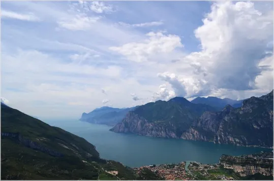 Le pendici del Monte Altissimo, il paese di Nago e il lago di Garda