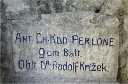 A caratterizzare ed impreziosire quest'area sono alcuni bassorilievi realizzati dai soldati durante le lunghe attese, sono quelle imperatore Francesco Giuseppe e dell'arciduca Carlo d'Asburgo. Nei lavori di restauro sono stati ripuliti e messe in risalto le firme per richiamare l'attenzione su queste opere.