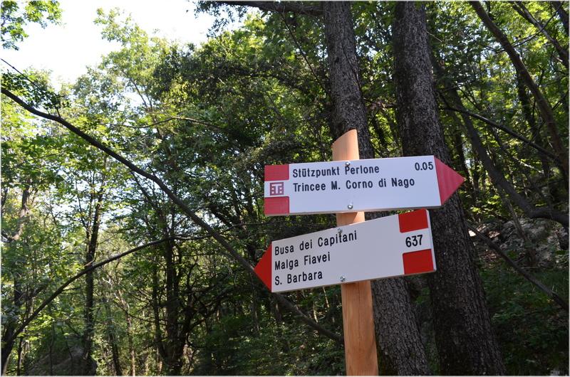 Seguendo il sentiero per la Busa dei Capitani fate attenzione al cartello Stützpunkt Perlone per non perdervi questa fortificazione