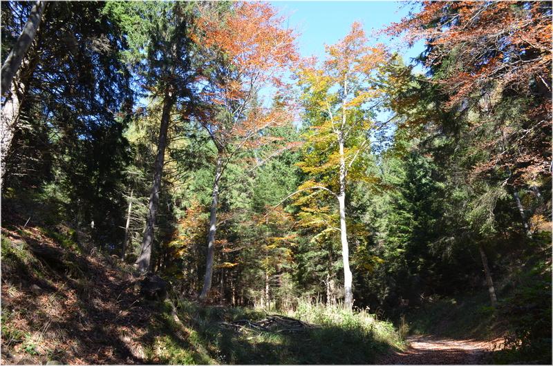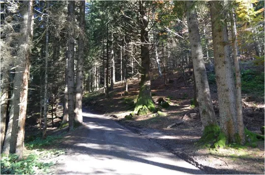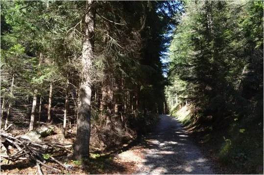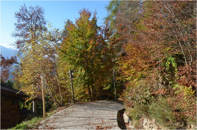 Il primo tratto lo si percorre nel bosco, dove una salita leggera e costante porta alla prima località