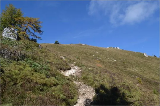 Si prosegue sulla strada per imboccare il sentiero che sale nel bosco e arriva sulla cima