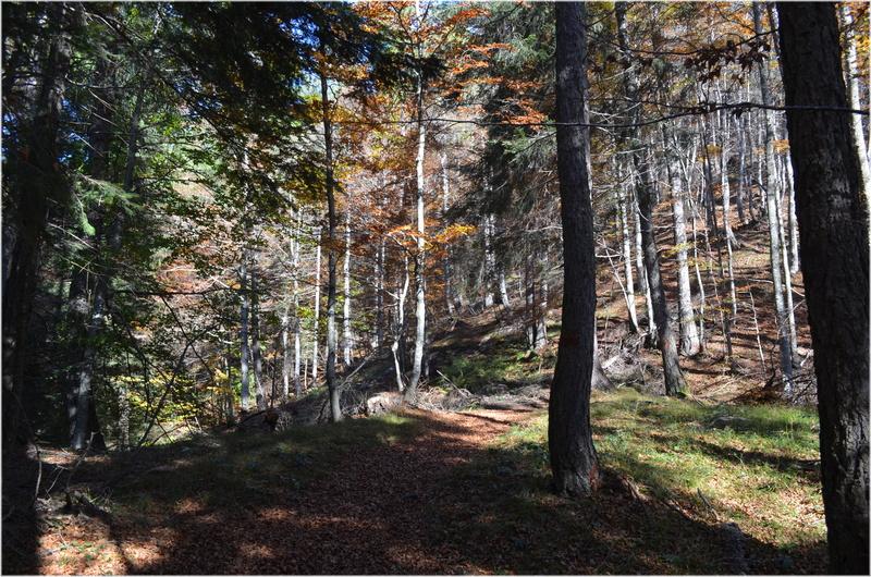 Si prosegue lungo il sentiero nel bosco finche si dirada man mano