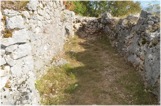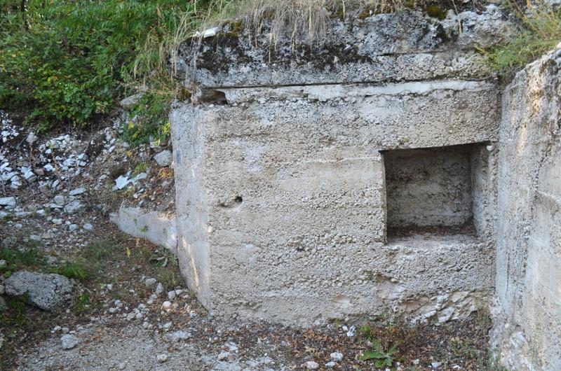 Il giro circolare del caposaldo ci riporta nella sua parte arretrata, percorrendo ancora lunghi tratti di trincea e scoprendo altre posizioni con feritoie e un osservatorio.