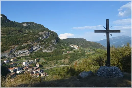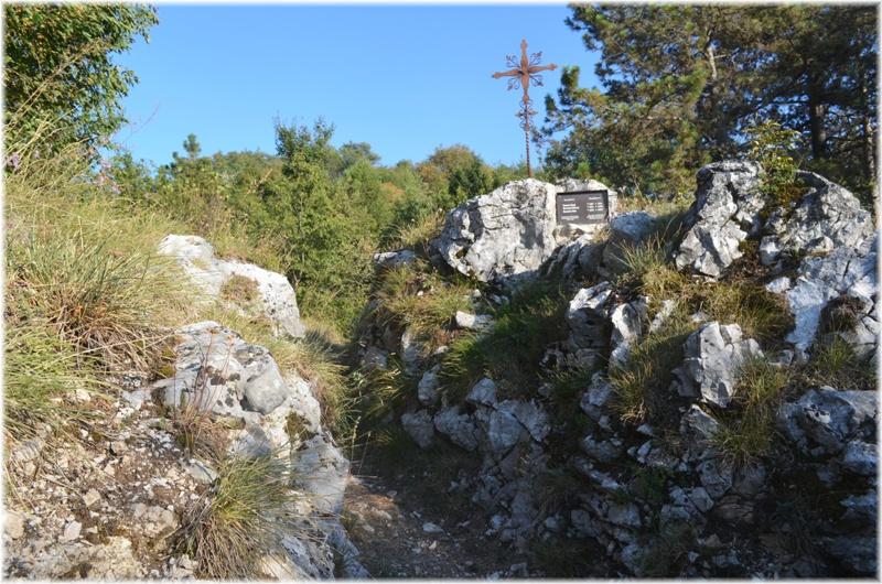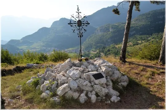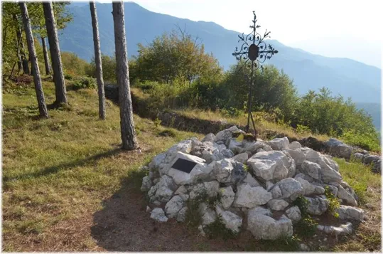 Una croce in ferro domina il paese di Manzano: un breve camminamento conduce nella parte sommitale del monte dove si trovano i resti in cemento armato di un osservatorio d'artiglieria; é il luogo ideale per una sosta, godendo di un magnifico panorama sul Baldo, sui Lessini e poi le Piccole Dolomiti, lo Zugna, il Pasubio e il Col Santo.
