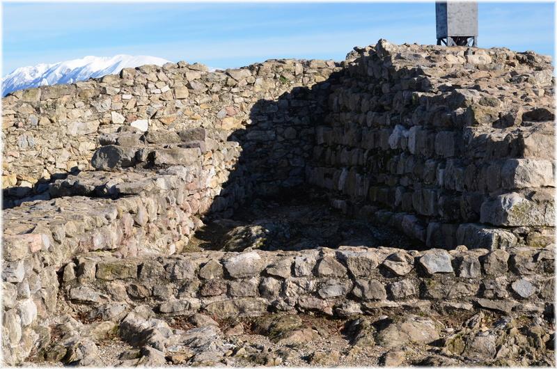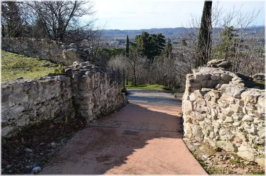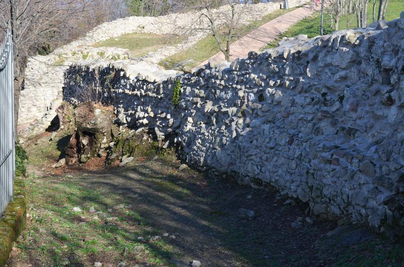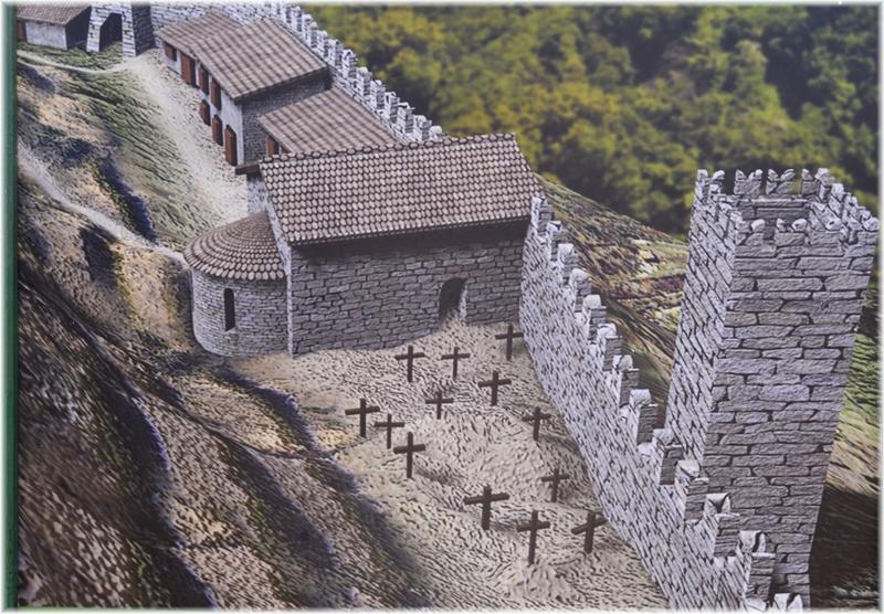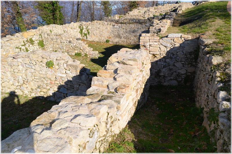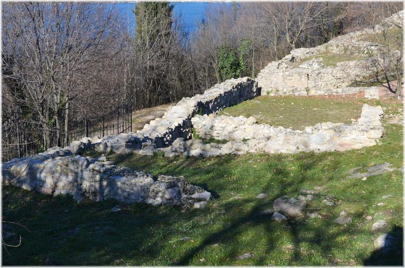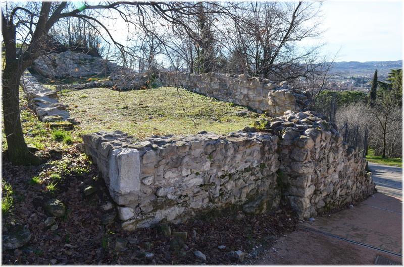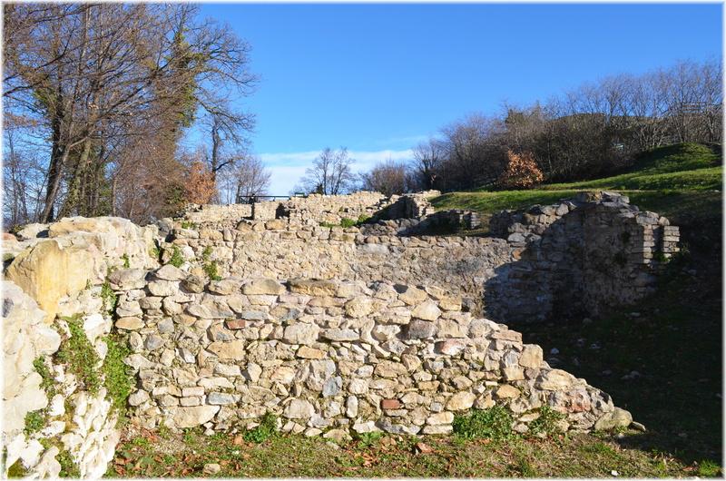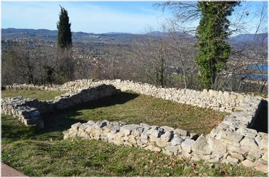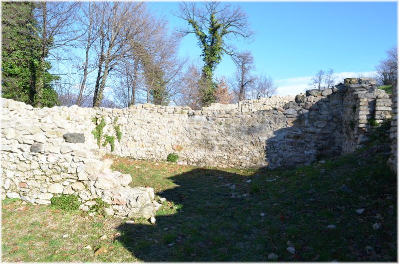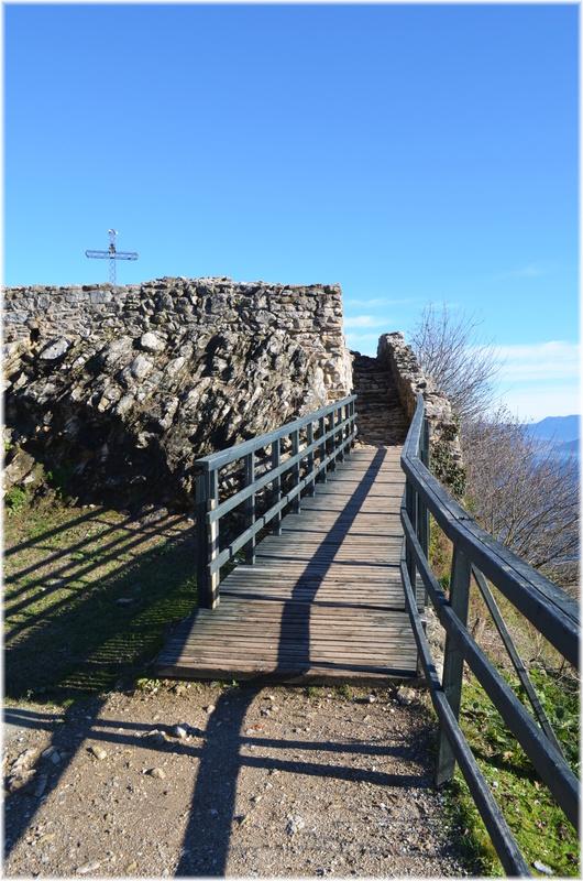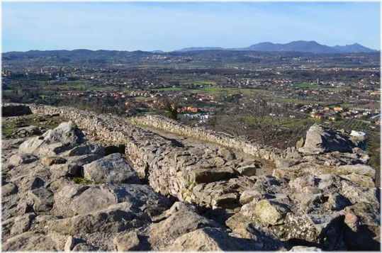 Partendo dal Centro Visitatori e seguendo la strada che conduce alla cima dellaltura si pu raggiungere a piedi la fortificazione medievale da cui il sito trae il nome e della quale sono visibili tre circuiti di mura di difesa (XII-XIII sec.), il pi interno racchiudente la sommit. Entro la cinta esterna gli scavi hanno identificato una sequenza stratigrafica che va dalla cultura di Lagozza (4000 a.C.) alla seconda met del XVI secolo, quando, nel 1574, il Provveditore della Repubblica di Venezia Soranzo ordin la violenta e definitiva distruzione della fortezza, che era ormai diventata sede inespugnabile di banditi.