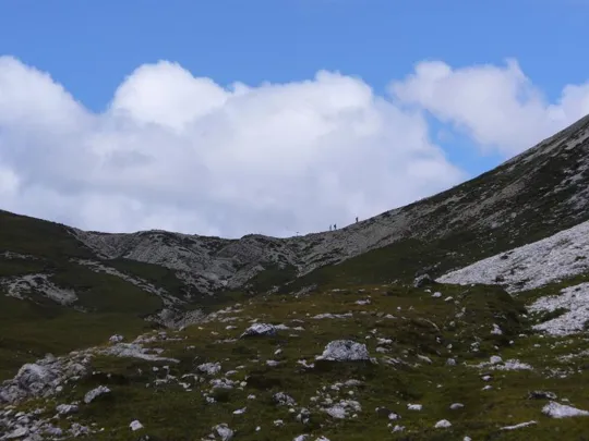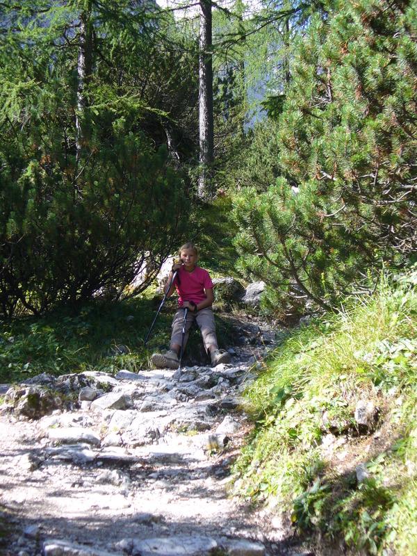 Lasciato il rifugio il sentiero prosegue, piegando a destra, innalzandosi lungo la Val Sassovecchio. Qui inizia il tratto ripido del tragitto e il passo diventa breve e meno cadenzato. Per fortuna non manca dove riposarsi.