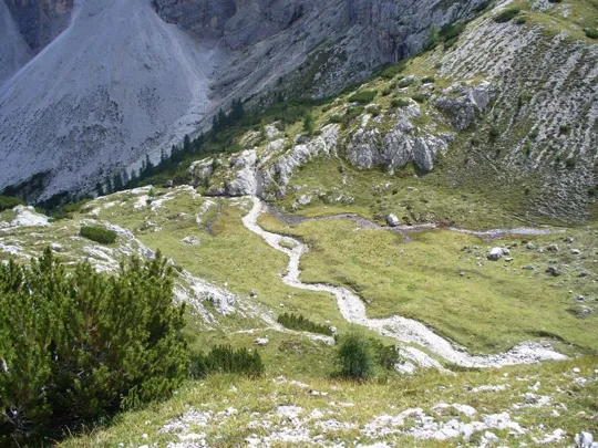 È possibile giungere al Fondo Valle - Talschluss Hütte anche attraverso un altro percorso meno battuto, semplicemente prendendo, dopo il prato erboso, uno dei vari sentieri sulla sinistra che dopo aver attraversato il bosco vi conduranno lungo il greto del Rio Fiscalino.