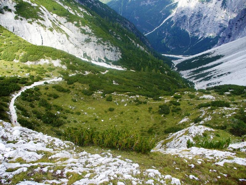 Locatelli - La Val Sassovecchio a scendere, sulla destra Cima Una e sullo sfondo la Croda Rossa di Sesto