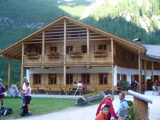 Ben presto, in mezz'ora di facile cammino, si giunge al rifugio Fondo Valle - Talschlußhütte a 1548 m., dove potete anche far giocare i vostri bimbi con i giochi messi a disposizione dai gestori.