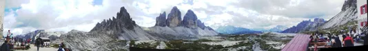 Panorama dal rifugio Locatelli, da sinistra: Monte Paterno, Forcella Lavaredo, Tre cime di Lavaredo, Monte Cristallino di Misurina con sotto il Monte Piana, la Croda Rossa, per finire la Croda dei Rondoi davanti alla Torre dei Scarperi, in ultima i pendii del Sasso Di Sesto
