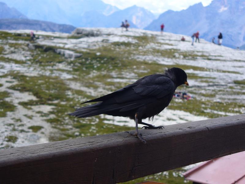 Bell'esemplare di giovane di Gracchio Reale sulla balconata del rifugio, femmine di Anitra selvatica o Germano Reale nel laghetto dell'Alpe dei Piani