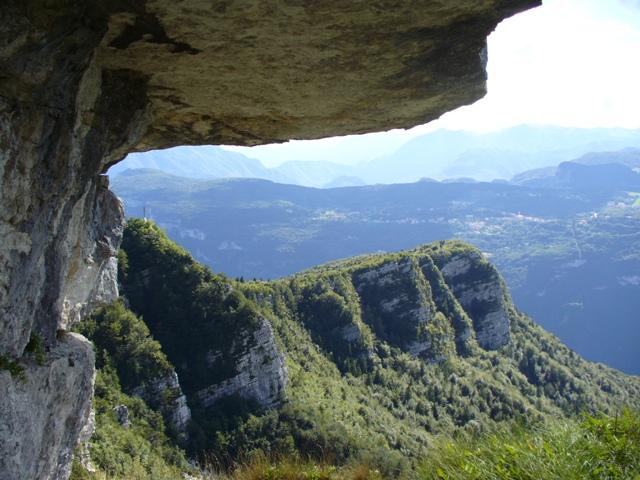 Il posto è ideale per ammirare il panorama: da sinistra Punta Altaburg e Punta Calghen; il Sacrario di Monte Cimone; le antenne sopra il Forte di Campomolon