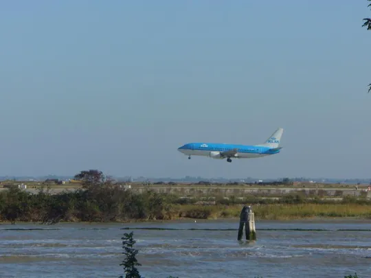 L'area del forte Bazzera è contigua all'estremità dell'aeroporto Marco Polo, quindi è veramente facile imbattersi nelle fasi di decollo o atterraggio di qualche aereo.