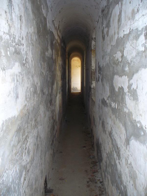 La garitta all'ingresso e vista d'infilata delle due polveriere.